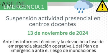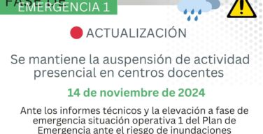 SUSPENSIÓN DE LAS CLASES POR ALERTA METEOROLÓGICA EL 14 DE NOVIEMBRE Sergio Mancilla noviembre 13, 2024 0 Comment Anuncio Estimadas familias: Ante los informes técnicos y permaneciendo en la fase de... Read more »