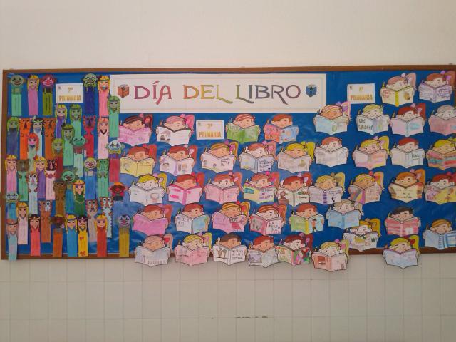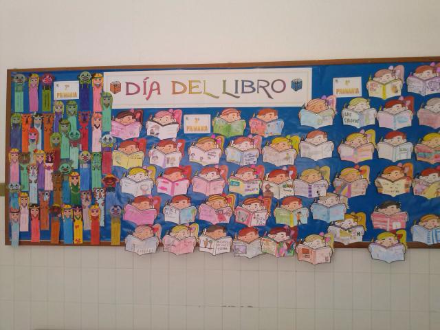 Los alumnos del primer y segundo ciclo de E. Primaria celebraron el día del libro con variadas actividades. Entre ellas la lectura de un libro con la participación de todo el alumnado de 2º y otras con caracter plástico expuestas en un panel.