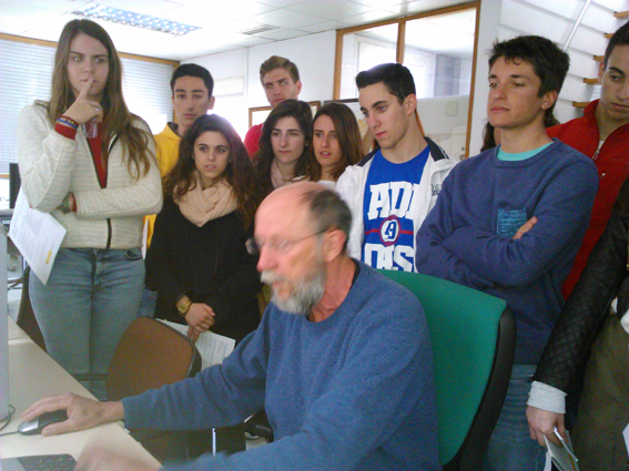 Después de esta presentación, desarrollada en el exterior de las instalaciones, pasamos al Centro de Predicción, donde su Director, Fausto, nos explicó los recursos con los que cuentan para realizar las previsiones y establecer los avisos pertinentes en caso de viento o lluvias extremas. Todo ello con la amenidad y brillantez con que nos tiene acostumbrados, y buscando siempre la participación de los alumnos.