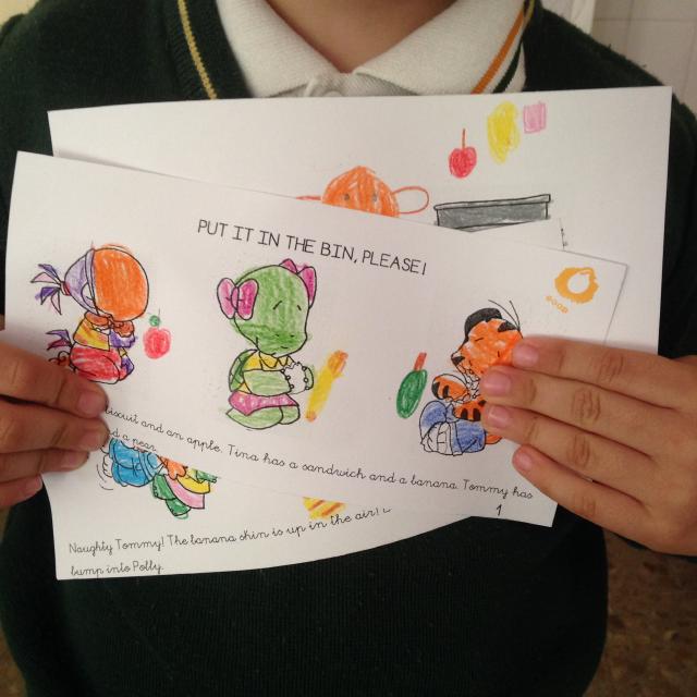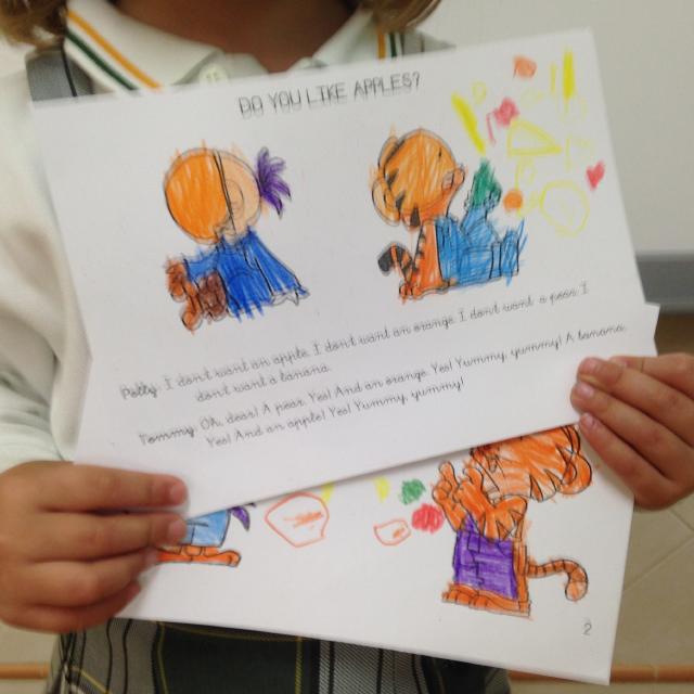This year we have made our own books based on the book story of the unit we have just finished: Food. On each story card our children have drawn the missing parts of the scenes, then they were ready to «read», do role play exercises, group games and work in pairs. Practise at home, encourage them and share in the pleasure learning brings!