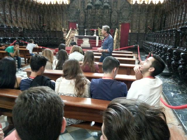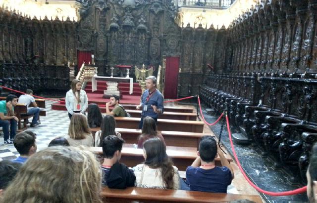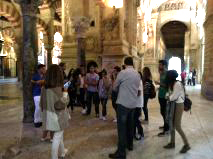 El autocar nos llevó de nuevo hasta Córdoba, donde pudimos almorzar junto a nustros compañeros de Ciencias. Por la tarde, ya todos juntos, visitamos la Catedral-Mezquita, fusión de la cultura hispanomusulmana y la tradición cristiana, buen ejemplo mde coexistencia para los tiempos que corren. Provistos de unos cascos que alquilamos en taquilla pudimos seguir las explicaciones del profesor de una forma más cómoda.