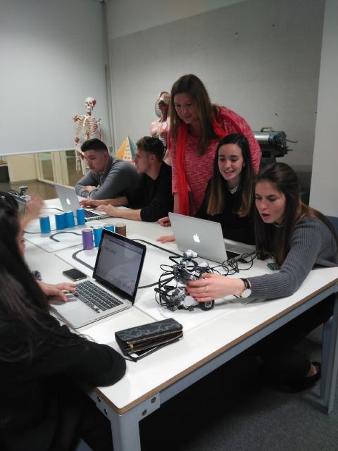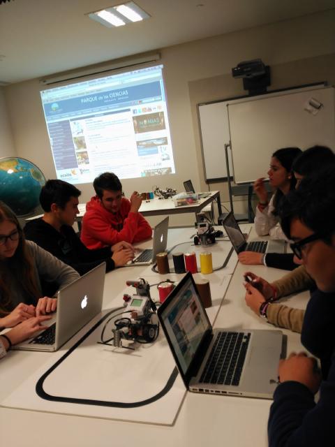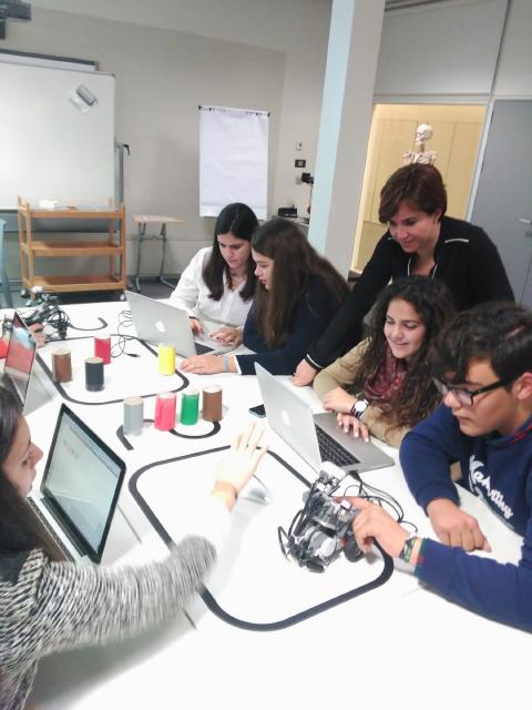 Sobre estas líneas, el Taller de Robótica, donde nuestros alumnos y alumnas aprendieron a programar un robot para que siguieran una serie de órdenes como girar al llegar al final del camino, recoger cilindros de un color determinado, obedecer una orden verbal, un sonido, o evitar un obstáculo.