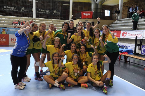 Por último la memorable actuación del Equipo Cadete Femenino en la minicopa de España. Excelente actuación las de nuestras jugadores colándose en toda una final nacional. Tras una intachable fase de grupos donde jugaron un balonmano de muchos kilates deshaciéndose de históricos equipos como el Rocasa canario o el organizador Bm.Porriño, jugaron una final que pelearon en todo momento a pesar de las adversidades. Perdieron el último partido, pero han sido las verdaderas animadoras del torneo dentro y fuera del campo como se puede ver en las fotos y vídeos que hemos recogido.