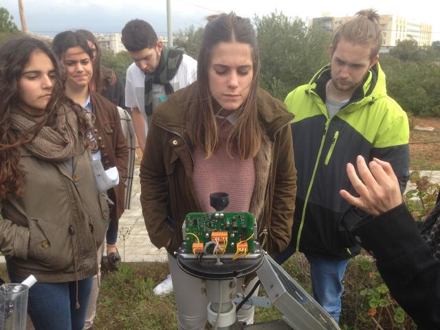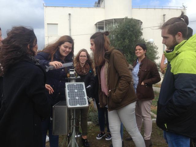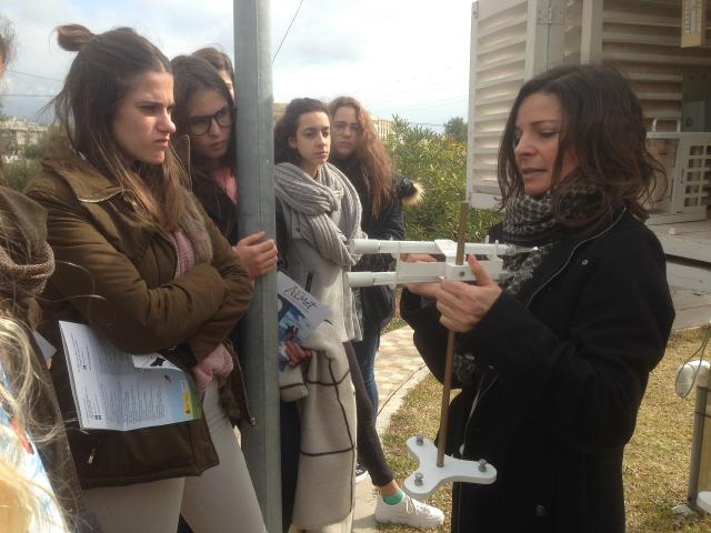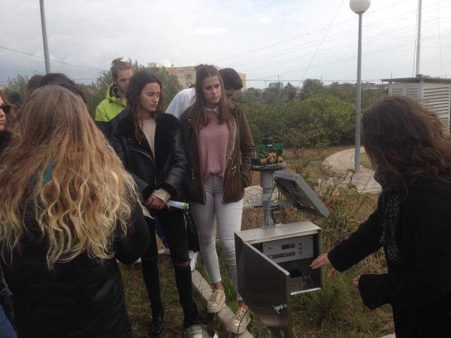 La visita al Centro Meteorológico de Málaga, ubicado junto a la Universidad de Málaga, viene siendo habitual para el grupo de Ciencias Sociales de 2º de Bachillerato. De esta manera podemos apreciar la aplicación práctica de lo estudiado en los temas de Climatología correspondientes a la asignatura de Geografía de España. Al llegar nos recibió Mari Carmen, la persona encargada de organizar las visitas de alumnos de Bachillerato y de la Universidad al Centro Meteorológico. Nos enseñó en el exterior de las instalaciones el equipo distribuido para la observación meteorológica, aunque algunos de los instrumentos están en desuso y han sido sustituidos por equipo automático conectado directamente con los ordenadores. Los alumnos pudieron manejar los termómetros de máximas y mínimas, pluviómetros, termohigrógrafos, barómetros… y apreciar de cerca su funcionamiento.