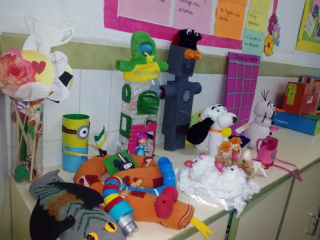 El alumnado de 2º de Educación Primaria ha ido realizando durante las últimas semanas juguetes con material de reciclaje. Esta actividad, que ha sido de libre ejecución y sin tener carácter obligatorio, ha tenido mucha participación por parte de l@s alumn@s y hemos podido disfrutar de las divertidas creaciones que han ido formando las exposiciones organizadas en las dos aulas de este nivel.