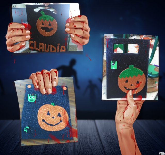 Las alumnas del ecotaller preparan unas bolsas de Halloween para recoger los caramelos en dicho día. Muestran una gran creatividad en su elaboración