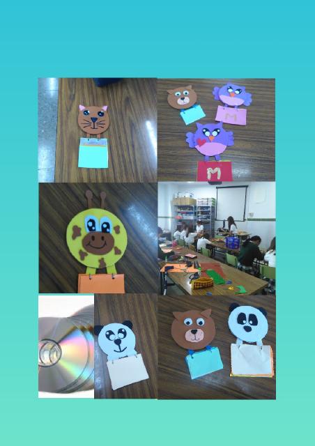 Las alumnas del ecotaller realizan divertidos animalitos reciclando CD.