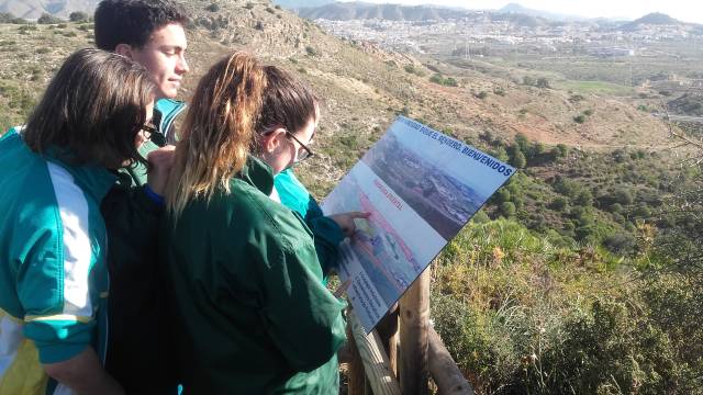 Después de una pequeña parada en el Mirador Bajo, se hicieron dos grupos, cada uno de los cuales trabajó un área diferente (fauna, flora, paisaje e impactos antrópicos). El recorrido siguió hasta el Mirador Alto. En ambos miradores se pudieron contemplar espectaculares vistas de la Bahía de Málaga y de los alrededores de la capital, así como del Valle del Guadalhorce, la Sierra de Mijas, la Sierra de las Nieves, el Torcal, los Montes de Málaga,…