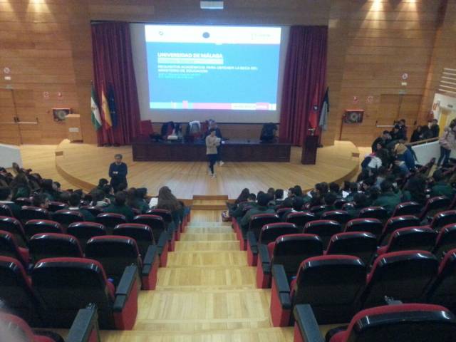 Nuestro alumnado tuvo ocasión, en primer lugar, de asistir conjuntamente a una charla en las que se les facilitó información sobre las diferentes especialidades a las que se puede acceder para obtener una formación en la Universidad de Málaga.