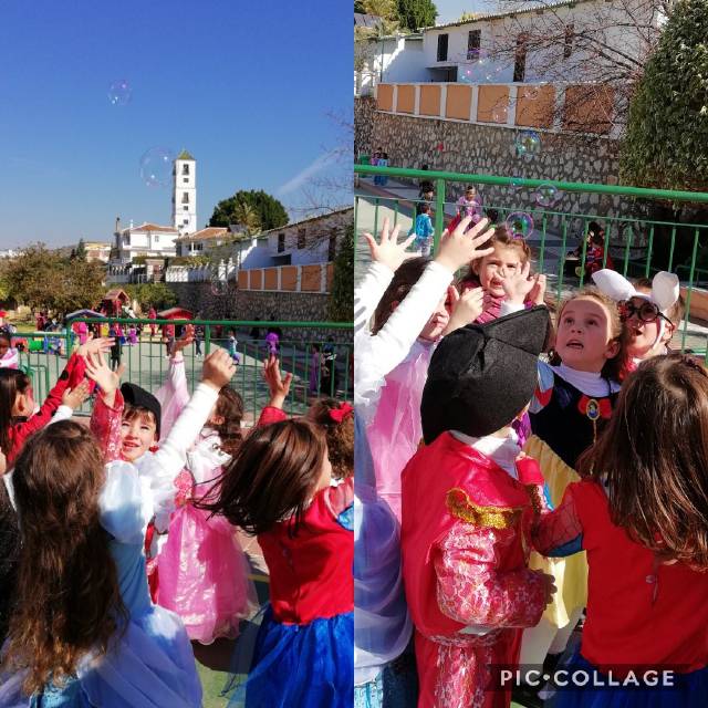 hemos jugado con globos y pompas de jabón…
