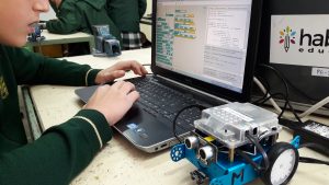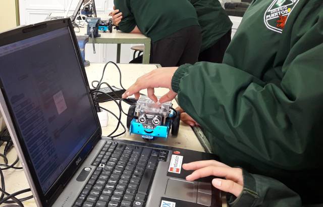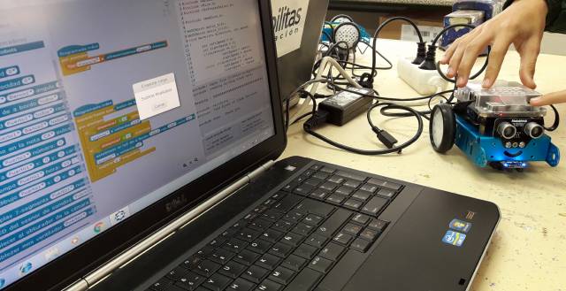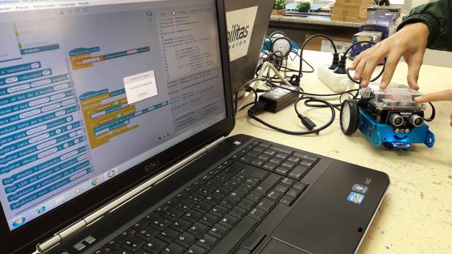 Durante las dos últimas semanas se ha llevado a cabo en 3º de ESO un taller sobre Robótica y Tecnología, donde los alumnos y alumnas de este nivel han podido resolver diferentes retos propuestos, programando los robots mBots de una forma fácil y divertida. Durante las actividades realizadas, el alumnado ha aprendido a programar los sensores de los mBots, para que realizaran diferentes tareas, programándolas con mBlock. Todo ello encaminado a desarrollar en el alumnado el pensamiento lógico y computacional para la resolución de problemas.