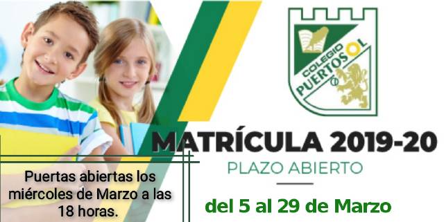 El Colegio abre el plazo de matrícula de nuevas admisiones para el próximo curso escolar 2019-20 para las enseñanzas concertadas de infantil, primaria y secundaria. Para Bachillerato dicho plazo se amplía hasta el mes de septiembre.