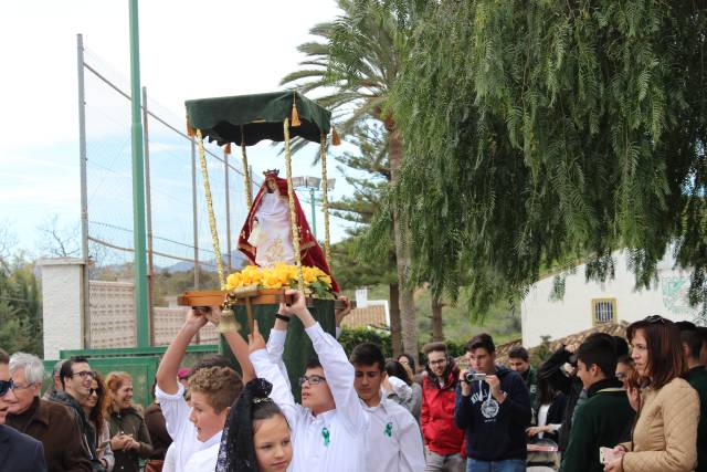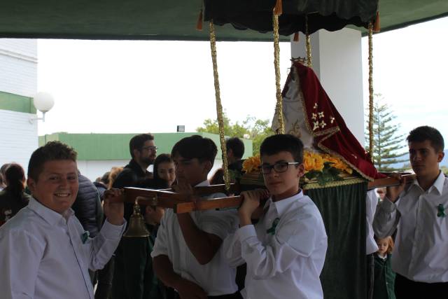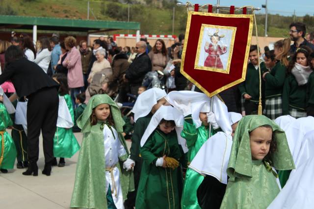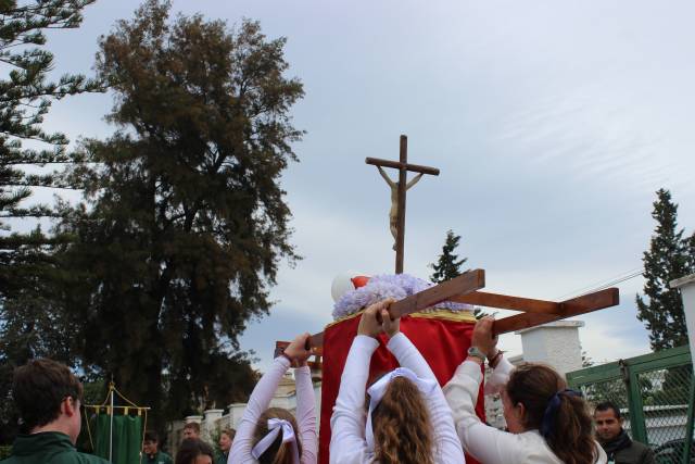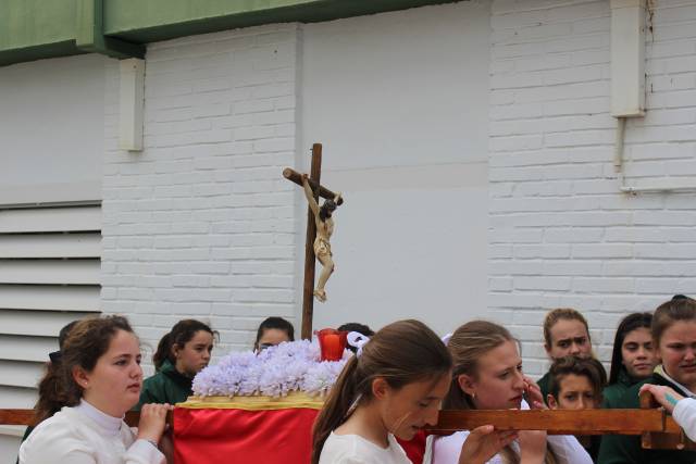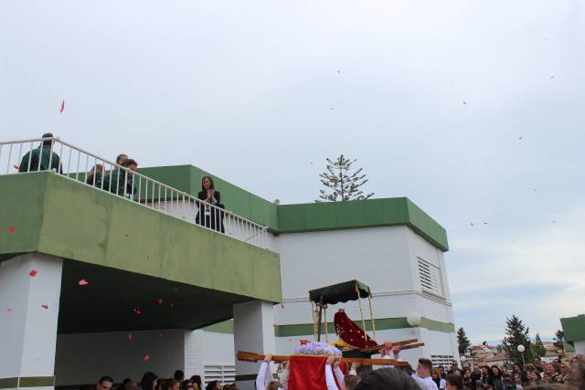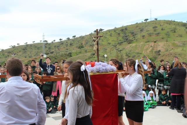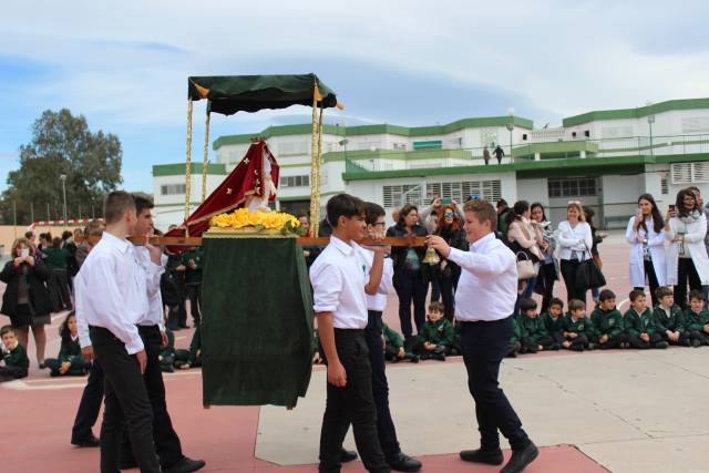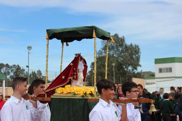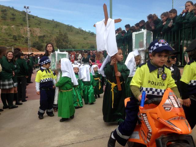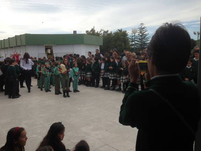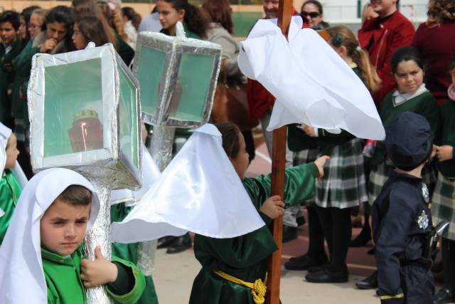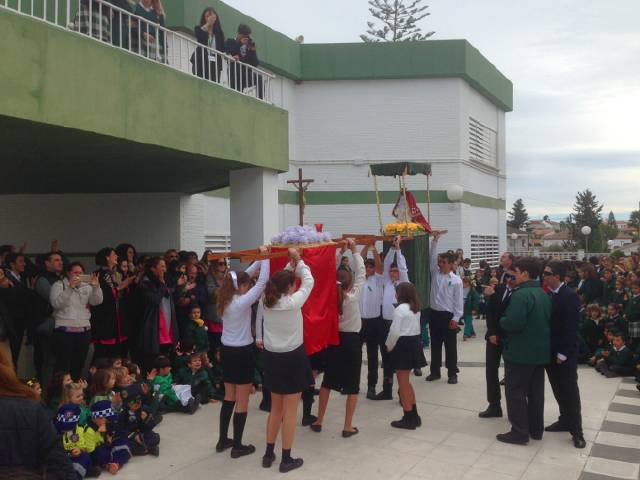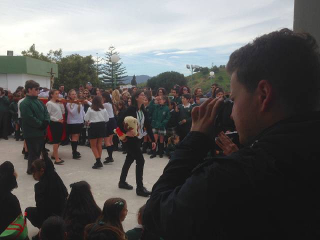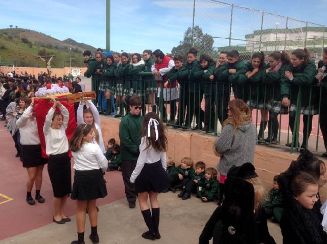 Este viernes de Dolores, como viene siendo tradicional desde hace bastantes años, se realizó la procesión en nuestro Colegio, organizada por el Taller de Teatro. No faltaron las mantillas, los hombres y mujeres de trono, marineros y legionarios… Este año con dos novedades importantes: nuestra propia banda de viento y una saeta, cantada a capella en el encierro. El Taller de Fotografía y Vídeo realizó un reportaje, del que subimos algunas imágenes. Enhorabuena a todos y todas por este día.