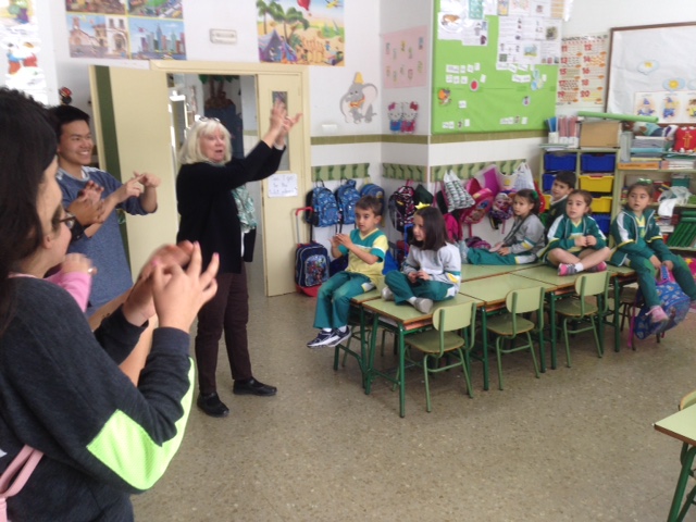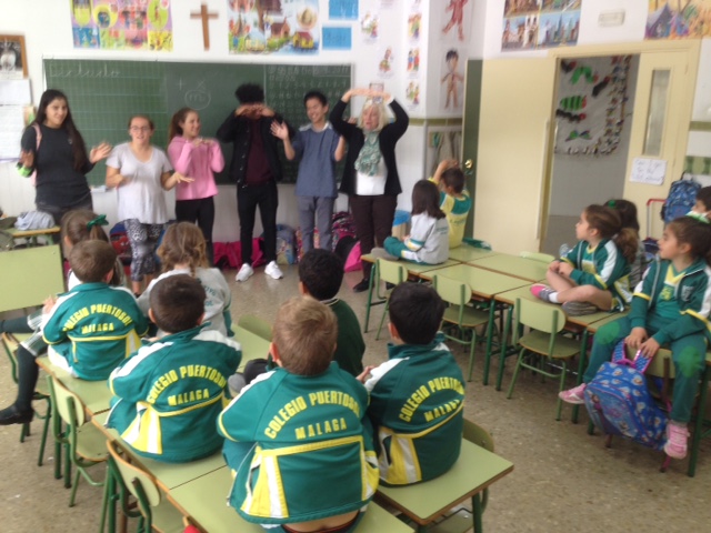 En las clases de inglés hemos cantado juntos «Sponge Bob», «Itsy Bitsy Spider», «Where is Thumbkin?», nos han contado cómo es su viaje y el largo vuelo de 12 horas.