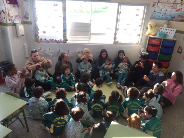 La señorita Susana Camas junto con los alumnos/as americanos del intercambio con California han visitado Educación Infantil.