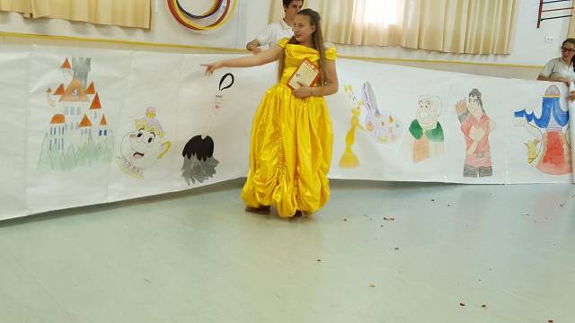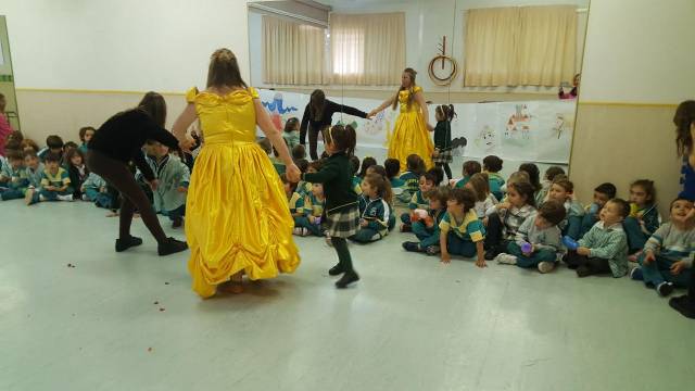 Hoy 23 de Abril los alumnos/as de educación infantil celebramos el día del libro y para ello realizamos manualidades, aprendemos las partes de un libro, leemos cuentos,…y los alumnos/as de secundaría del taller de cuentacuentos nos dramatizan el maravilloso cuento de la bella y la bestia haciéndonos partícipes de dicha actuación.