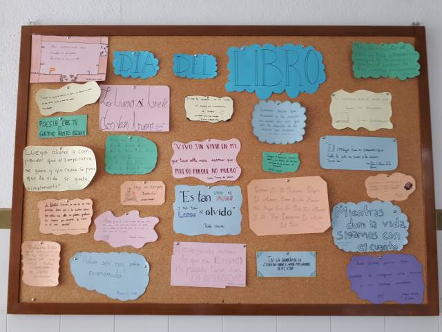 En clase de Lengua Castellana y Literatura se han escritos fragmentos de las obras más importantes de la Literatura Española y el profesorado del departamento de biblioteca, con la ayuda del alumnado de segundo de bachillerato, ha creado un panel para exponer dichos trabajos.