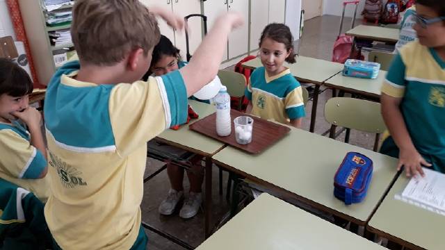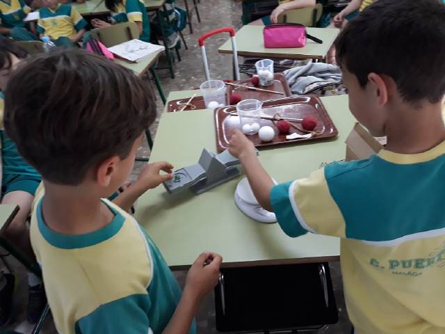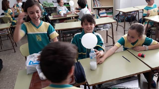 Durante la semana pasada, los alumnos de 3º de Educación Primaria han realizado experimentos en el aula trabajando en grupos siguiendo el método científico de observación, anotación y reflexión sobre experimentos de masa, volumen, materia y estados de la materia.