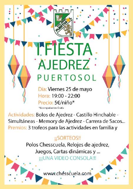 El próximo viernes día 25 de mayo, vamos a celebrar nuestra I Fiesta de ajedrez.