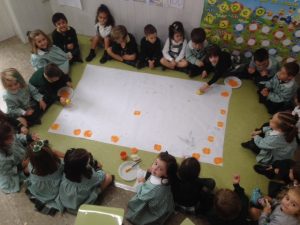 Jack-O’-Lantern came to school to frighten monsters! So we could relax for a week and have fun with the pumpkin!