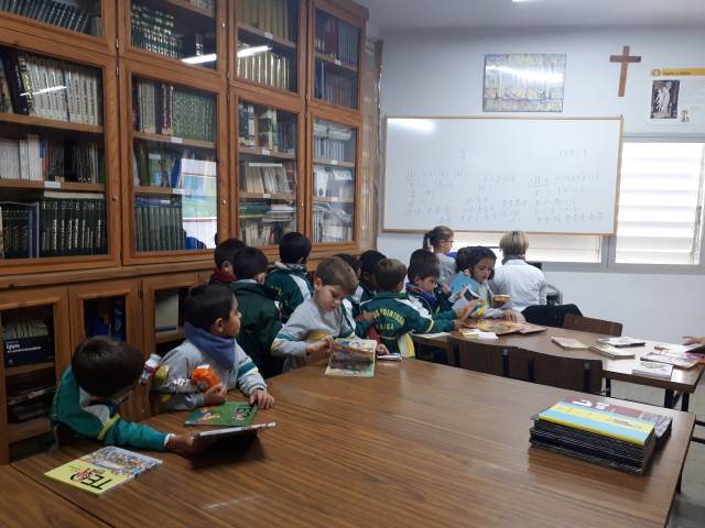 La biblioteca del colegio sigue abriendo sus puertas cada día para todo el alumnado del colegio a la hora del recreo: