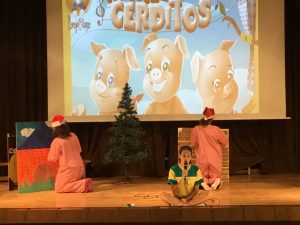 A continuación, imágenes de algunos momentos de la última representación: LOS TRES CERDITOS.