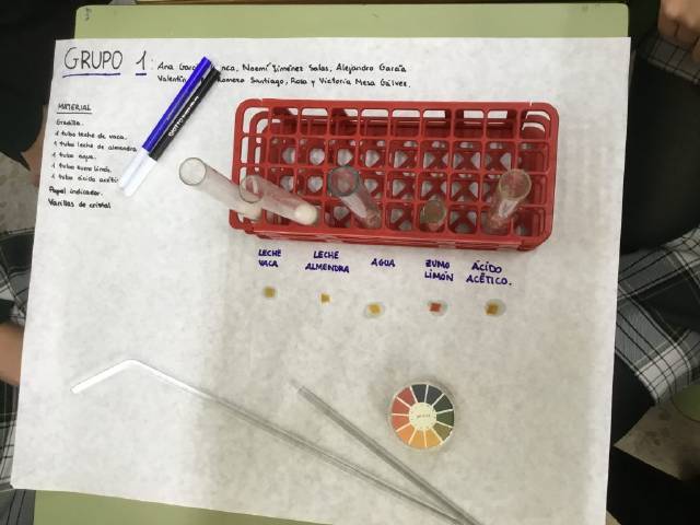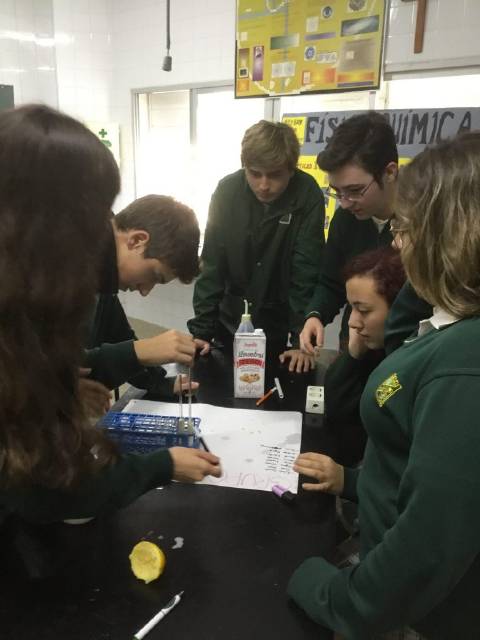 El alumnado realizó su trabajo de exposición de PH y ácido-base antes de las prácticas, complementando con las mismas la adquisición de los conocimientos relacionados con esta parte del temario de FYQ.
