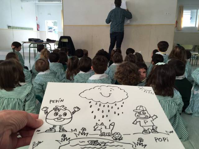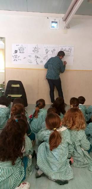 Nos ha contado un cuento con tanta magia en su voz y entonación y ha realizado los dibujos con una soltura que hasta «las seños» se han quedado con la boca abierta… 🙂
