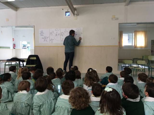 Hoy nos ha visitado el escritor e ilustrador de cuentos Rafael Salmerón hijo de la también escritora de libros infantiles y juveniles Concha López Narváez y el cual ha recibido el premio Lazarillo 2017.