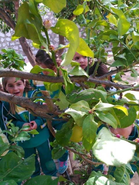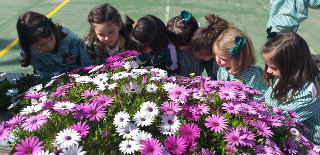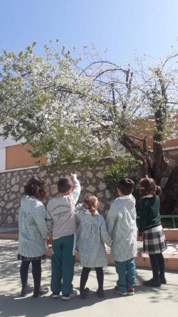 El alumnado de Educación Infantil aprovecha sus instalaciones para salir al patio y observar los cambios que se producen con la llegada de la primavera.