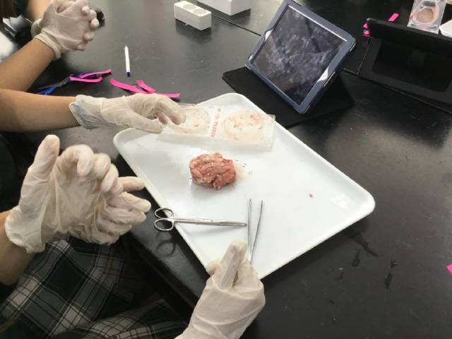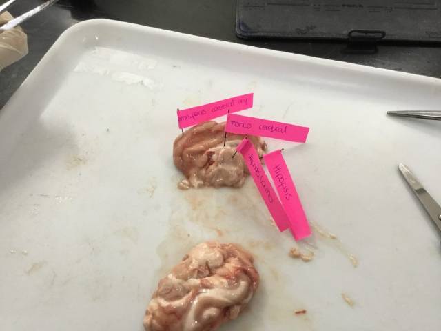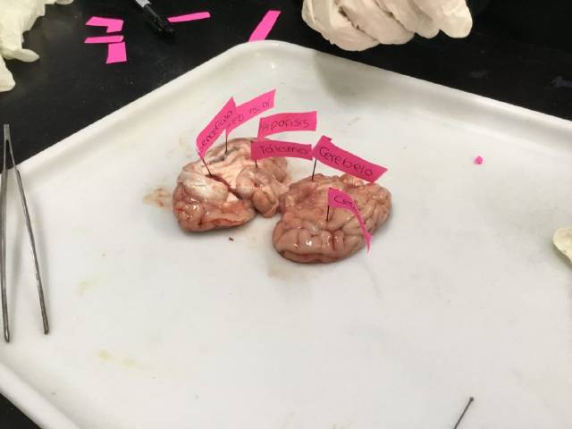 Disección de encéfalo de cerdo en Biología y Geología de 3ºESO.