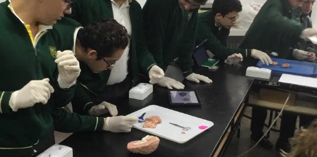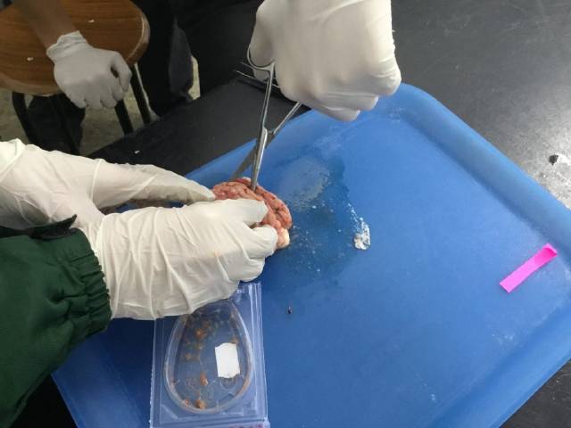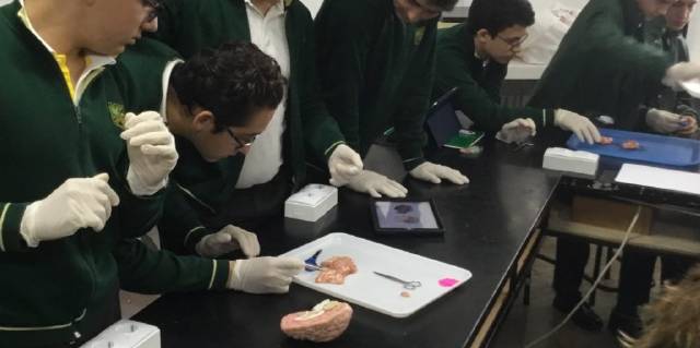 El pasado martes 9 de Abril, los alumnos de 3º ESO realizaron una disección de un encéfalo de cerdo en la que pudieron observar cómo es y las distintas partes que lo componen tales como el cerebro, cerebelo, tálamo, etc. Para ello utilizaron el material necesario como pinzas, tijeras quirúrgicas y por supuesto, guantes de látex. Además, se les facilitó un protocolo en formato digital para su correcta manipulación y visualización.