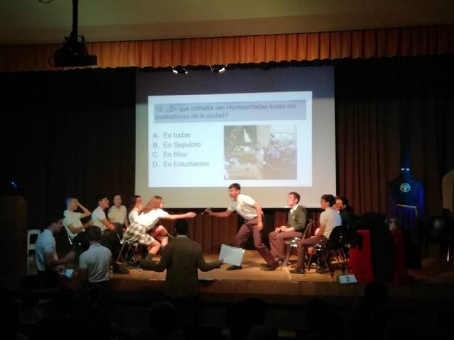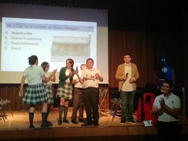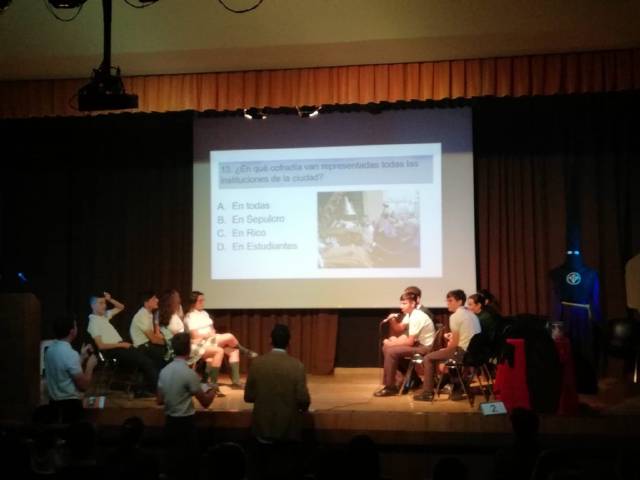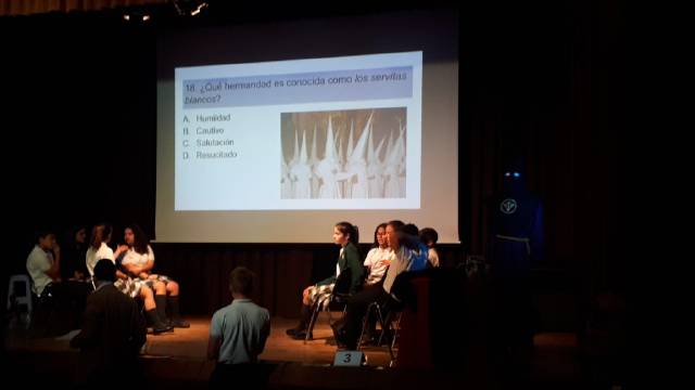 El pasado Jueves día 11 tuvo lugar el tradicional concurso de Semana Santa del Colegio Puertosol. El alumnado de Educación Secundaria, por un lado 1º y 2º en una primera ronda y 3º y 4º en una segunda, asistió a dicho concurso y tuvo la ocasión de oir el Pregón que Daniel Vega, de 1º de Bachillerato, nos recitó. A continuación comenzó el concurso con una serie de preguntas que el alumnado supo defender con gran conocimiento del tema.