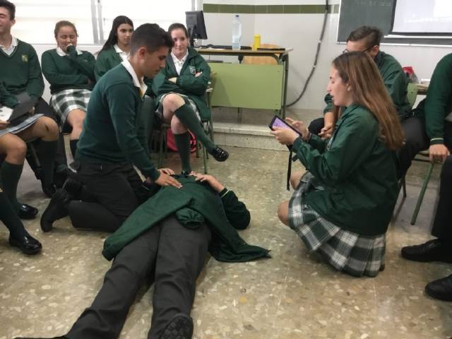 El objetivo de esta actividad realizada en 3ºESO, en una tarea conjunta codirigida por los tutores del curso D. José Mariscal y D. Miguel Moya, es poner en manos de los alumnos unas nociones mínimas como herramienta útil, sencilla y homologada para poder afrontar aquellas situaciones más frecuentes que se puedan presentar y que requieran la aplicación de los primeros auxilios.