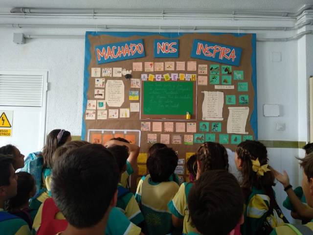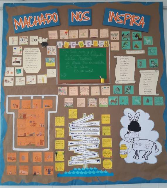 Para celebrar el día del libro en la etapa de Educación Primaria hemos colaborado entre todos para realizar una gran panel en torno a la figura de Antonio Machado, por el 80 aniversario de su muerte (1939-2019).