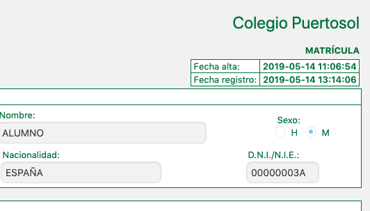 Enviada la solicitud, vuelvan a entrar en el formulario, donde deberán comprobar que el campo fecha registro esté lleno, de no ser así, no se ha realizado correctamente la renovación de matrícula y deberán volver a realizar el procedimiento.