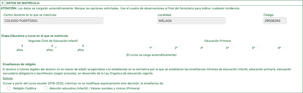 Pulsando sobre el botón «Ir al formulario de matriculación» les llevará a la siguiente página.