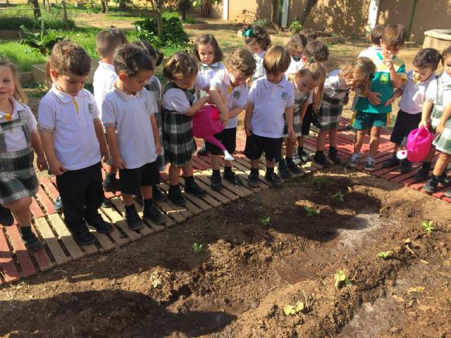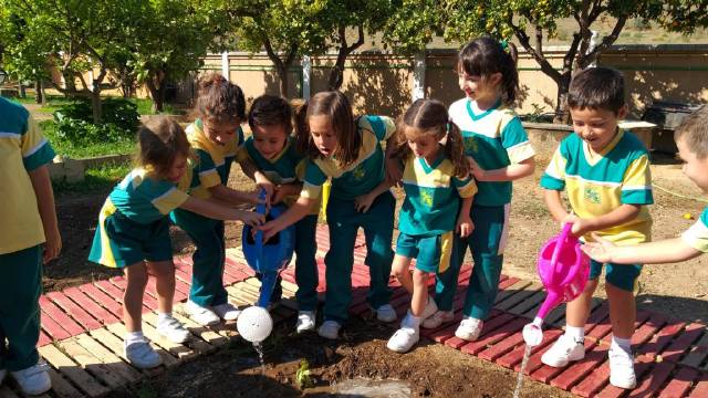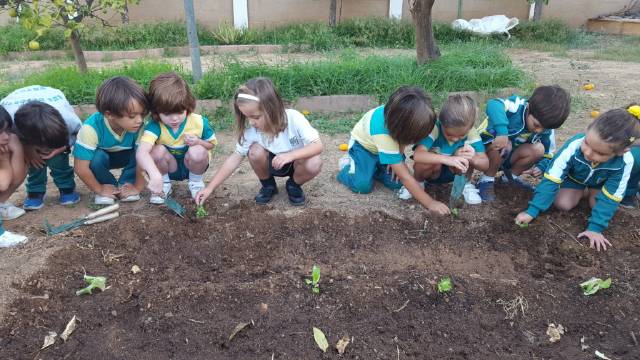 El alumnado de 3,4 y 5 años de Educación Infantil empieza a cuidar del huerto del colegio.