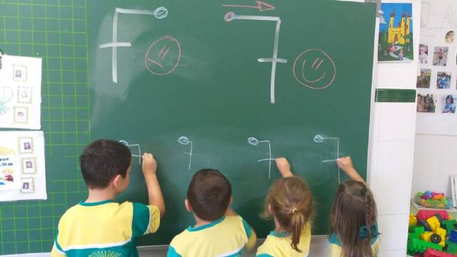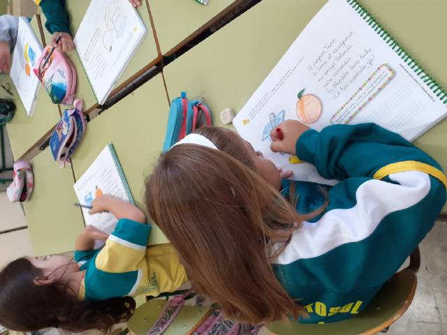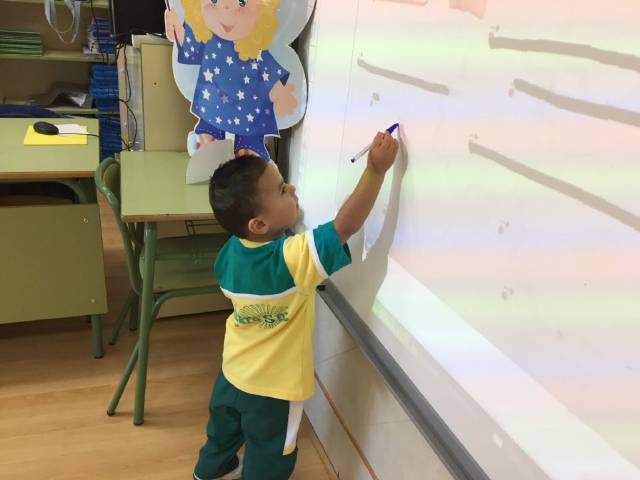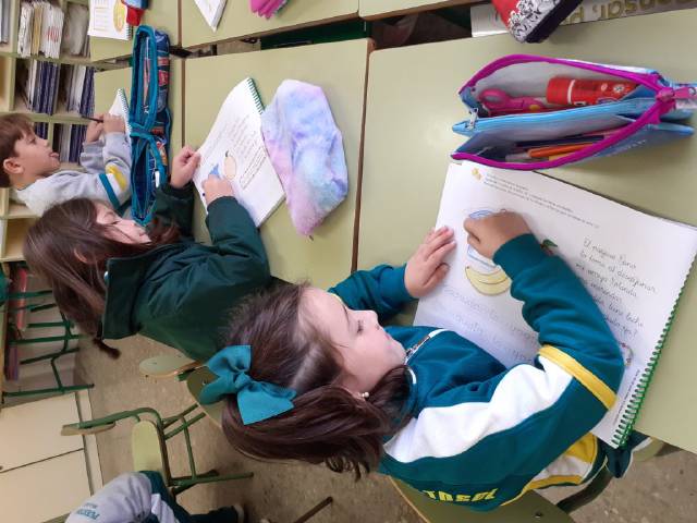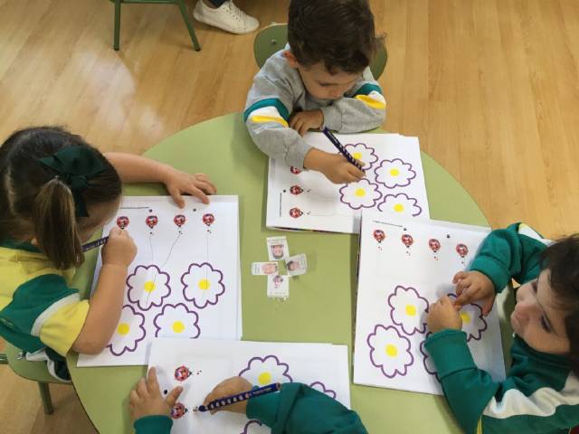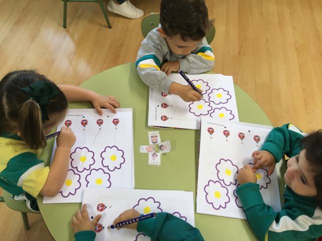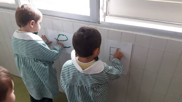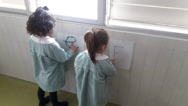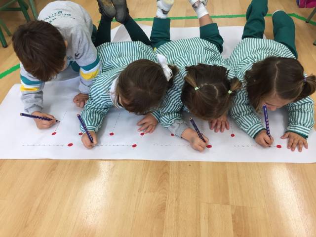 el alumnado de 4 años trabaja el trazo y la escritura de letras,sílabas y números ;