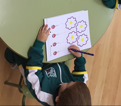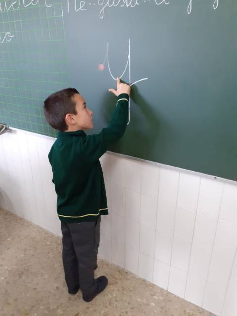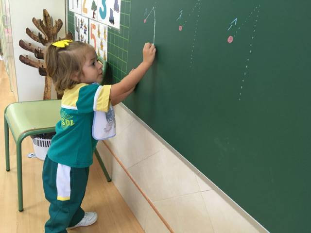 está trabajando el trazo recto,curvo,de números,…;