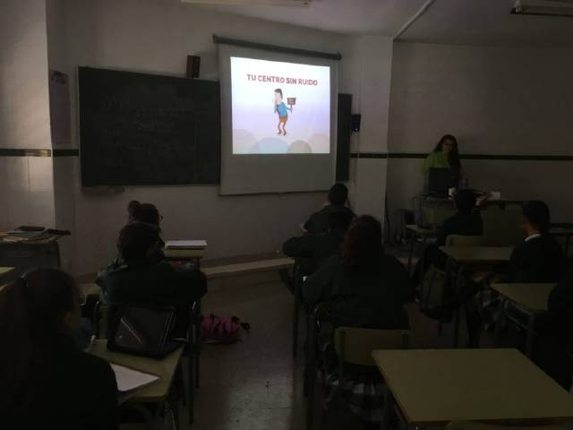El día 14 de enero visitó nuestro centro una monitora ambiental para hablar con nuestro alumnado de 2º de ESO de los problemas que genera la contaminación acústica en nuestro entorno. En la charla se interactuó con los participantes y, de una forma activa, se intentó concienciar de la importancia de tener un control sobre el ruido que se genera en las ciudades y, más concretamente, en el propio Centro Escolar con el fin de alcanzar una alta calidad ambiental.