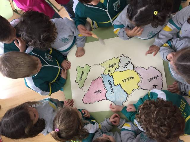 del alumnado de CESUR (centro oficial de formación profesional) ,los cuales, les han hecho partícipes de distintos talleres tanto en el interior de las clases,en el patio de educación infantil y en el aula de psicomotricidad dedicados a las distintas provincias andaluzas.