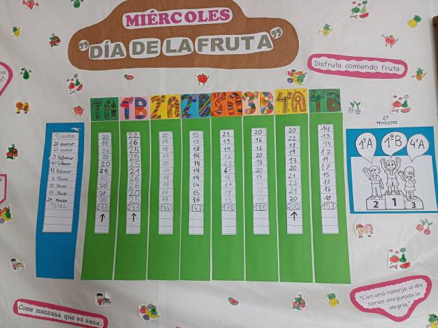 ¡Enhorabuena a 1º A, 1ª B y 4ª A de Educación Primaria! Ellos han sido los mayores comedores de fruta en los desayunos de los miércoles durante el transcurso del Segundo Trimestre.