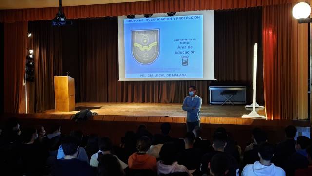 La Policía Local de Málaga visitó nuestro colegio la pasada semana para impartir a los alumnos de 1º de Bachillerato una charla informativa sobre el consumo de alcohol y drogas. Un equipo de agentes del cuerpo de la Policía Local expuso los riesgos y consecuencias que tiene el consumo del alcohol y drogas. La charla se centró sobre todo en los efectos nocivos y degenerativos que la droga tiene para la salud, haciendo un especial hincapié en el desconocimiento que tienen muchas personas sobre lo que realmente consumen.