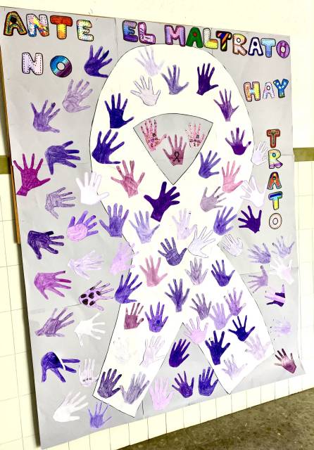 El viernes 25 de Noviembre los alumnos y alumnas del tercer ciclo de Primaria han realizado un mural reivindicativo contra la violencia de género. Junto a sus compañeros y compañeras, han realizado durante el día diversas actividades de concienciación y reflexión.
