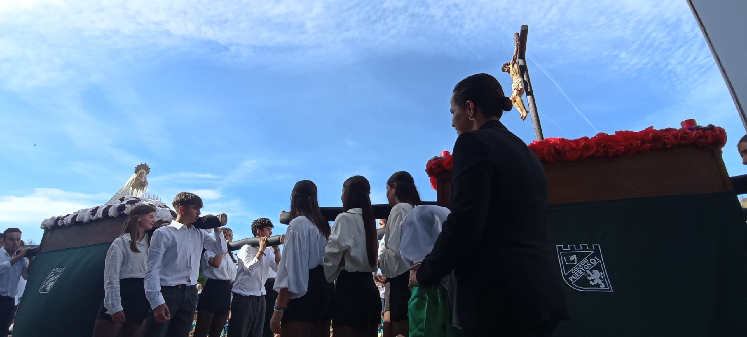 Este año ha sido muy especial ya que se han estrenado tronos realizados por nuestro personal de mantenimiento, a los que les agradecemos el gran esfuerzo, y decorados por el alumnado de taller creativo, de arte, tecnología y ecotaller. Agradecer también la participación del alumnado de 4º de ESO que han colaborado como hombres y mujeres de trono, a 6º de Primaria que nos acompañó tocando La Saeta, y por supuesto a todo el alumnado y organizadores que han realizado la actividad de una manera ejemplar, con responsabilidad y entusiasmo.