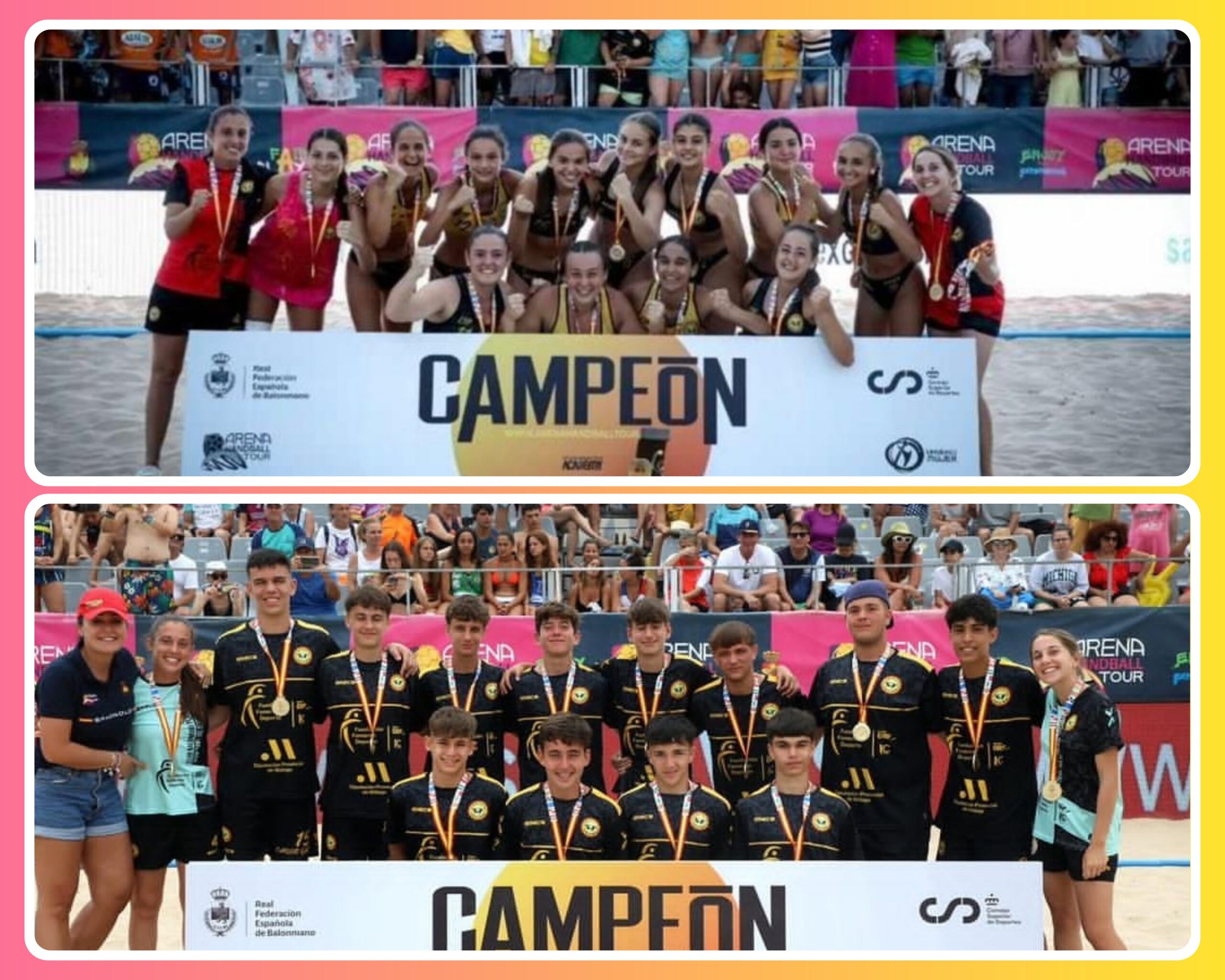 De la mano del club BM playa Ciudad de Málaga con el cual se mantiene una estrecha relación, un buen número de jugadores y jugadoras de nuestro Club han participado este fin de semana en la Copa de España de balonmano playa que se ha celebrado en las fantásticas playas de Barbate. Este torneo inaugura el circuito nacional Arena Handball Tour que recorre distintas playas del país a lo largo del verano.