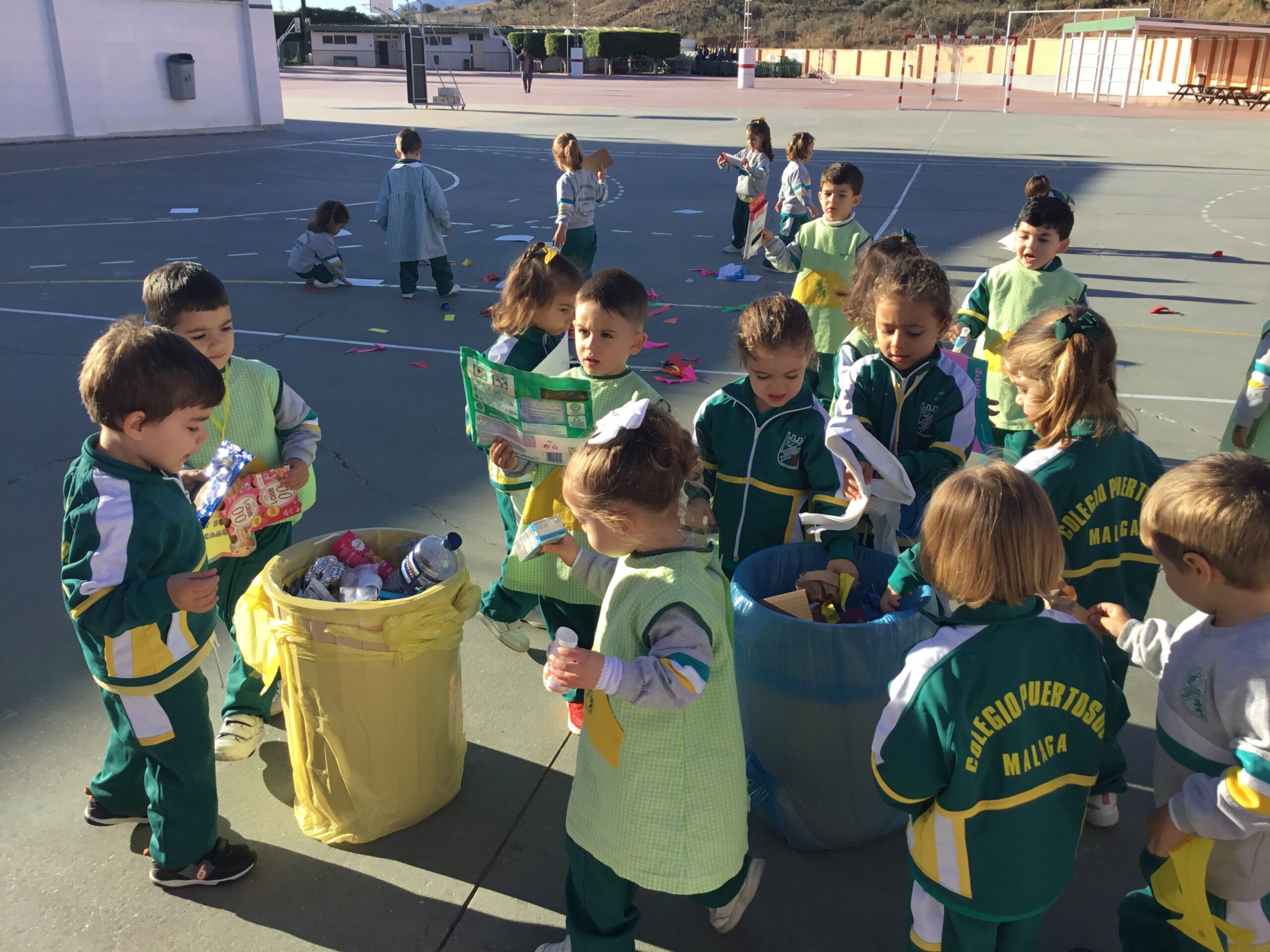 reciclando los envoltorios, envases y papeles de nuestros desayunos y meriendas.