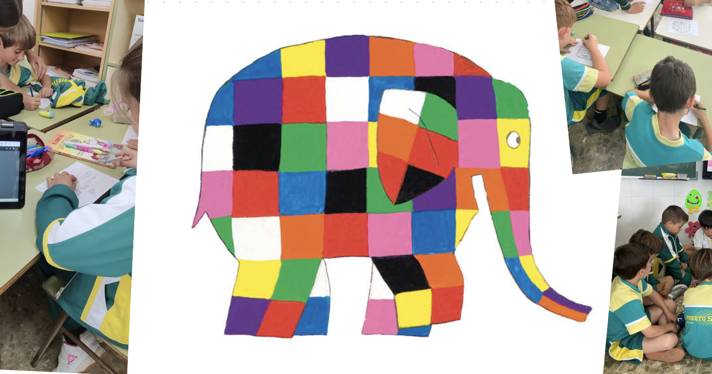 Con motivo del Día del Libro (23 de abril), el alumnado de primer ciclo de primaria ha recibido la visita de sus compañeros de 6º de primaria. Estos llevaron a cabo la representación del cuento de «ELMER», un elefante multicolor.