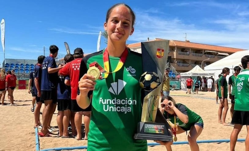 Nuestra talentosa alumna Elena Valdivia Reina ha logrado un gran triunfo al proclamarse campeona de España de playa con la Selección Juvenil Andaluza. Este logro demuestra su dedicación y habilidad en este deporte. No es la primera vez que Elena nos llena de alegrías con sus éxitos, ya que esta temporada se ha proclamado campeona de España tanto en pista como en playa. Lo que resalta su constancia y talento. Su esfuerzo y pasión por el deporte la han llevado a alcanzar este importante logro, y sin duda es un ejemplo a seguir para todos. ¡Felicidades a Elena por este merecido reconocimiento!